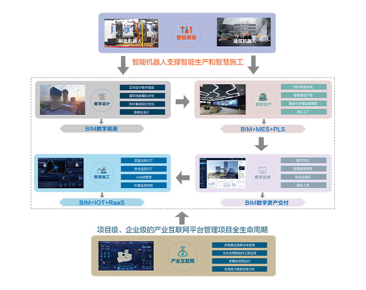 從“數據驅動”“以人為本”“綠色低碳”三大場景切入以“數字設計、智能生產、智慧施工、智能裝備、產業互聯網及智慧運維”六大維度為著力點,將51項技術在試點項目中進行了深度應用,針對性的解決參數化設計、構件生產信息追溯、施工作業“危、繁、臟、重”、項目業財一體化管理、數字孿生建筑信息模型交付等行業痛點。